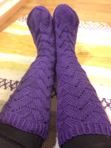 Mutta ei. Sukkia neuloin ja tällä kertaa Monkey-mallilla Novitan Nalle langasta. Violetit meni lahjaksi ja beiget kiitokseksi. Eli uudet joulusukat saatava pian puikoille.